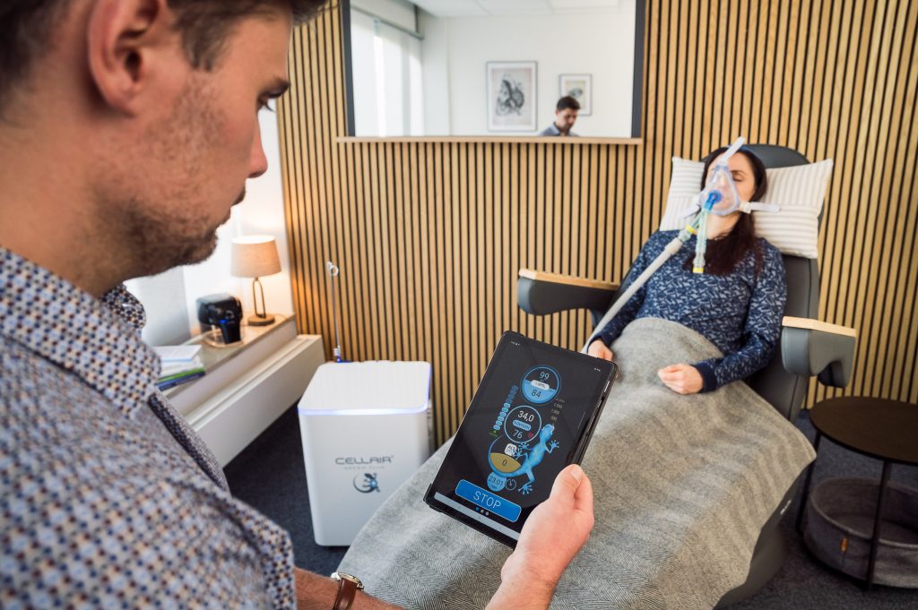 Das Intervall-Hypoxie-Hyperoxie-Training (IHHT) ist eine moderne Form der Atemgastherapie. Dabei atmet der Patient über eine Maske im Wechsel sauerstoffarme Luft (Hypoxie) und sauerstoffreiche Luft (Hyperoxie). Diese kontrollierten Reize aktivieren zelluläre Anpassungsmechanismen, die zu einer Verbesserung der mitochondrialen Funktion, Leistungsfähigkeit und Regeneration führen.